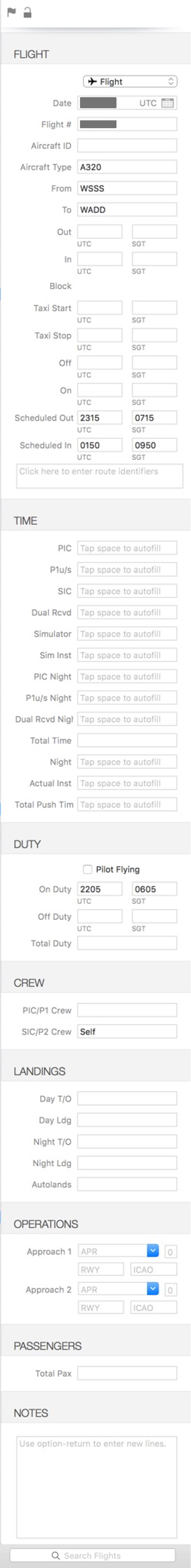You will notice that a lot of the details have already been imported for you. After each flight, I will only fill in the following details